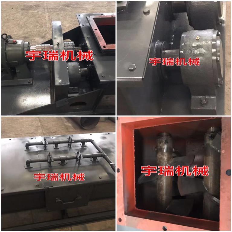 粉塵加濕攪拌機螺旋葉片將輸入的粉塵攪拌的同時均勻輸向出料口方向,同時給水裝置根據灰量大?。ń涍^球閥調節)調節噴灑適量的水,在輸送葉片的攪拌擊打輸送下,使水和灰塵進行充分混合。并輸送至出料口排出。